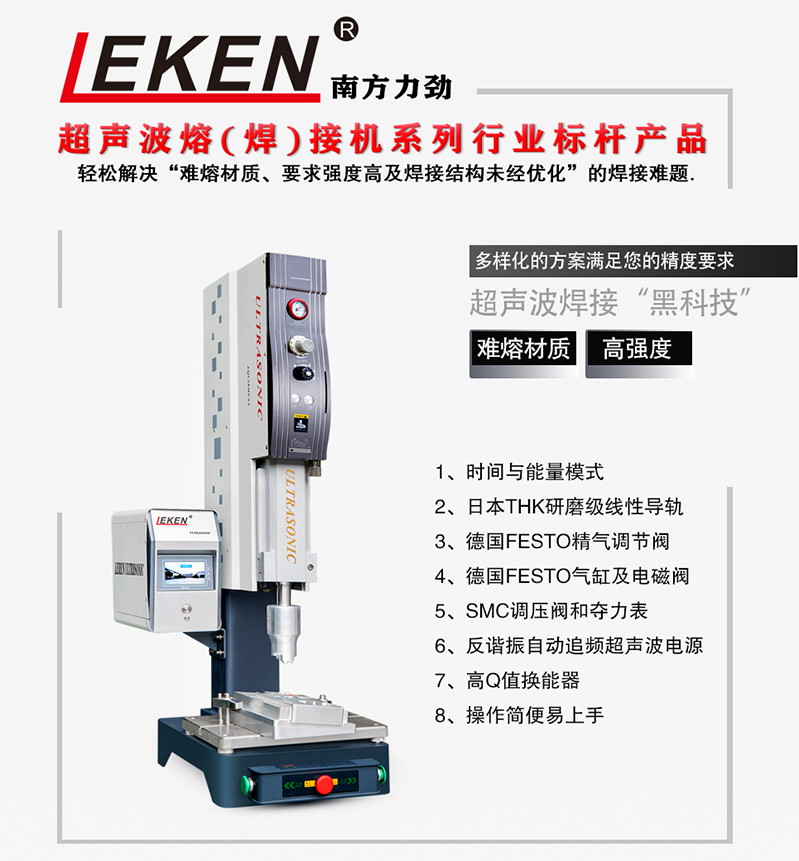 1、熔接法:在換能器的作用下,機械振動能轉換為超聲波能,通過焊頭傳導至焊接件上。兩焊接件處聲阻大產生局部高溫,讓接觸面融化,然后再一定的壓力下,兩焊接件融化粘接在一起,經過一段時間冷卻后,兩焊接件達到美觀、快速、牢固的效果。