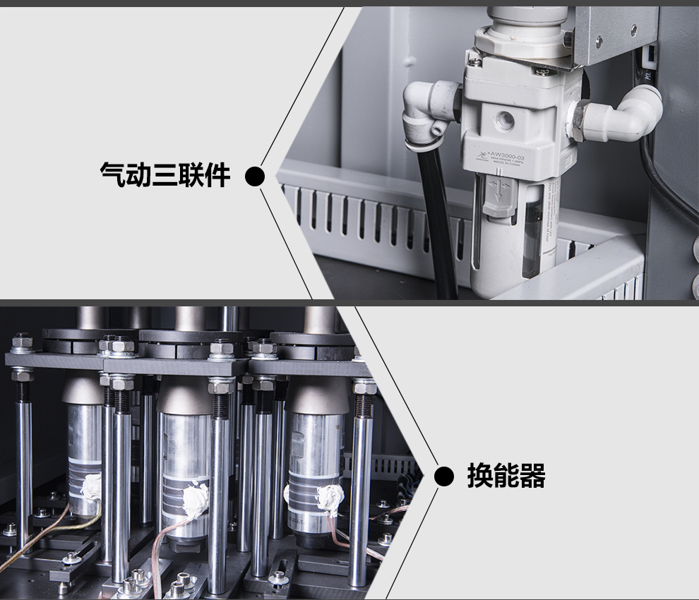 2.設備上模升降為氣缸驅動,超聲波焊接單元放置底部固定,由上模驅動下降整體焊接。