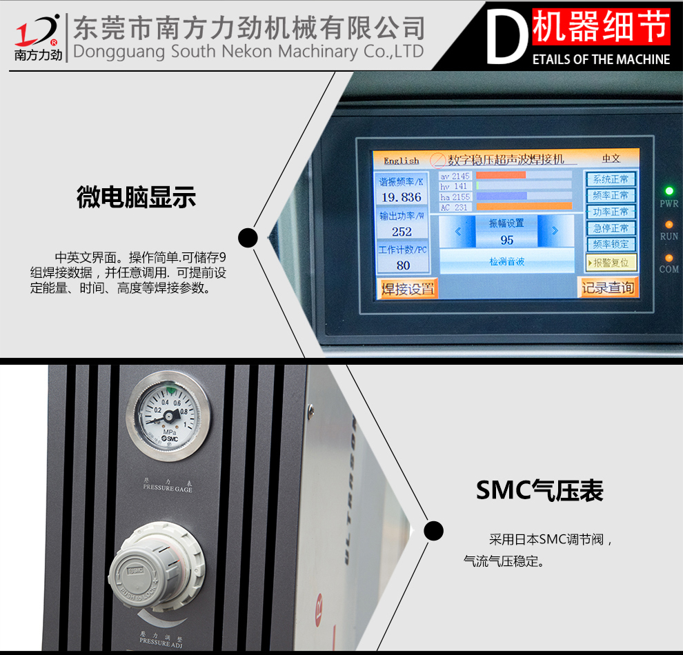 南方力勁機械有限公司是一家大型的超聲波設備研發、生產及銷售企業,公司塑焊機事業部從事生產標準塑焊機,2600W-3200W塑焊機,4200W-5200W塑焊機等大功率焊接設備;15K、20K、28k、40K等精密型焊接設備,還有非標塑焊機設備,雙頭塑焊機、四頭塑焊機、六頭塑焊機、中空板膠框焊接機、護欄管焊接機熱板機、旋轉式熔接機、汽車門板焊接機、汽車儀表盤焊接、汽車遮陽板焊接機汽車燈焊接機、汽車保險杠焊接機等,同時為客戶設計非標自動化塑膠焊接設備。
