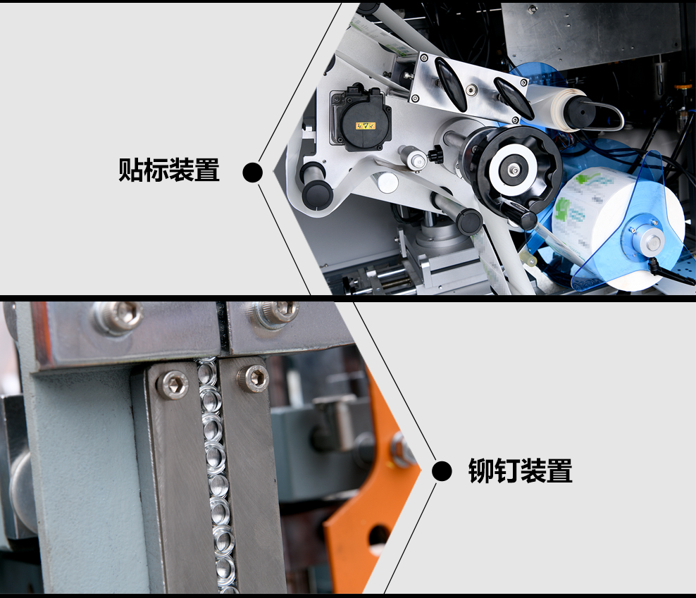 包括上料-翻邊-焊接-打孔-貼標-對折-打鉚釘-集料.產品質量穩定,可減少5-7人,