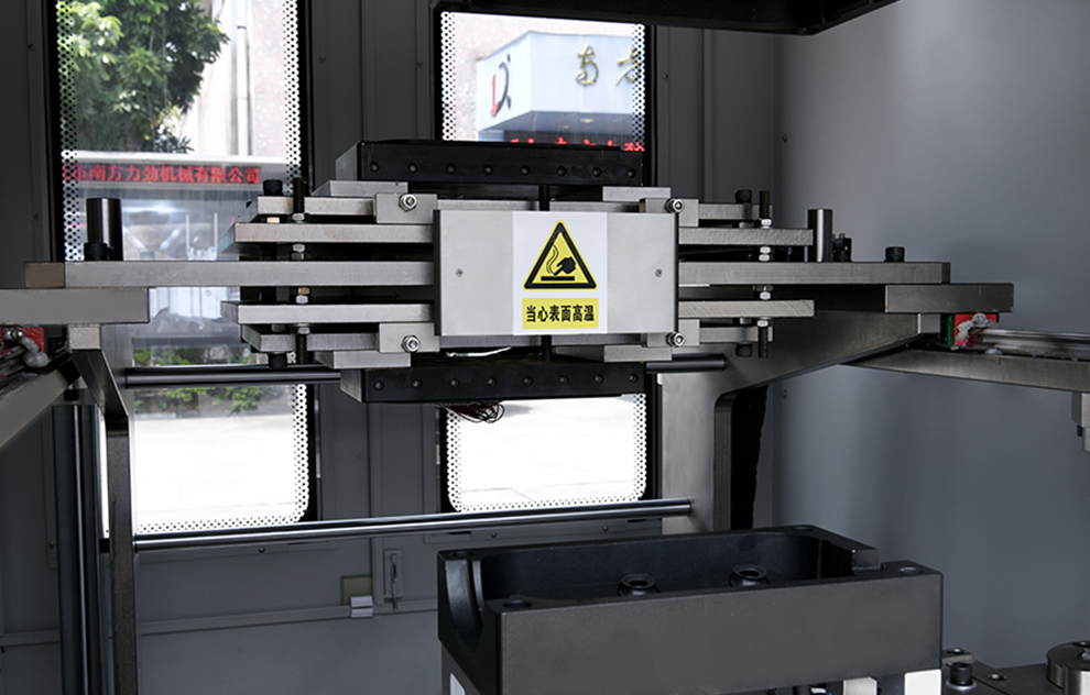 上下模板移動機構(gòu)采用日本松下伺服電機+臺灣滾珠絲桿+直線軸承驅(qū)動,重復(fù)精度0.02mm